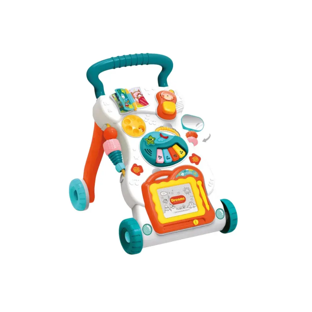 Este caminador didáctico musical de la marca Huanger está diseñado para acompañar a tu bebé en sus primeros pasos y estimular su desarrollo desde los 6 meses. Combina juego, aprendizaje y seguridad en un diseño ergonómico, divertido y funcional.