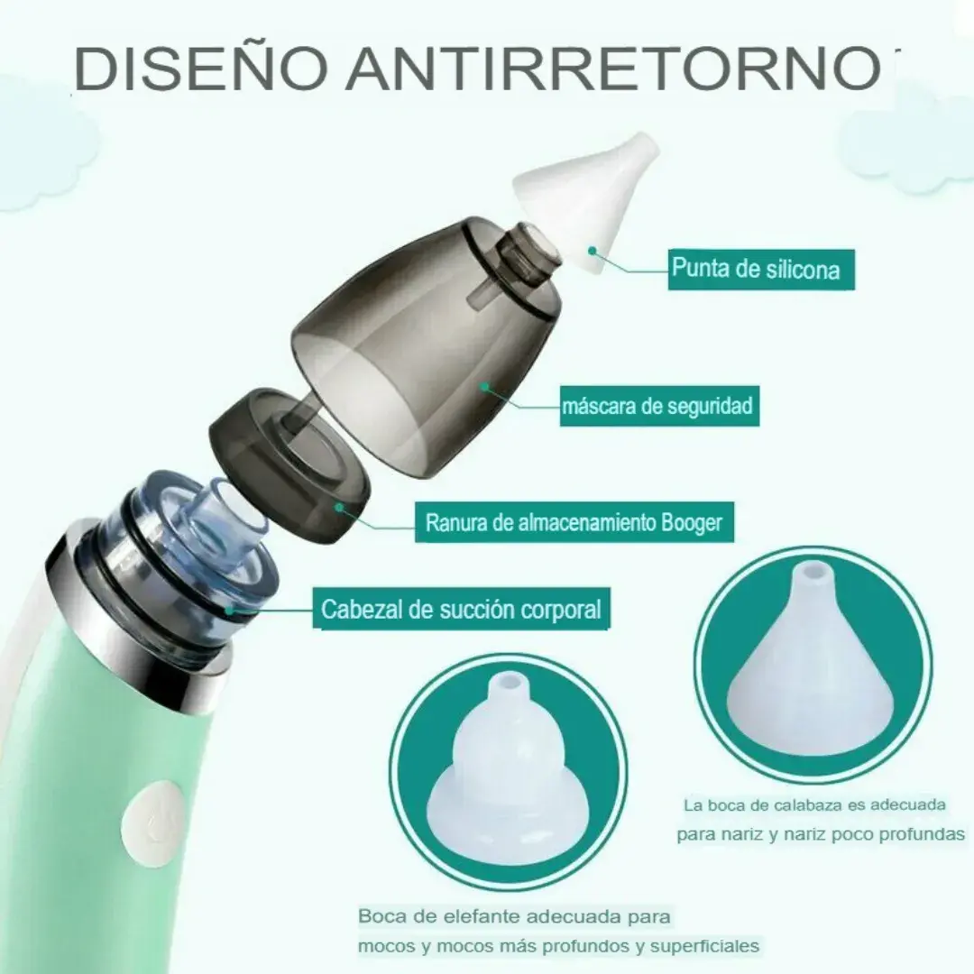 Este aspirador nasal eléctrico para bebés es la solución perfecta para despejar suavemente la nariz de tu pequeño. Con un diseño ergonómico y puntas de silicona suave, ofrece una limpieza eficaz sin causar molestias. Su funcionamiento silencioso lo hace ideal incluso para usar mientras el bebé duerme. Fácil de desmontar y limpiar, garantiza una higiene óptima. Incluye varios niveles de succión y cabezales intercambiables para adaptarse a cada necesidad. Un aliado esencial para el cuidado diario del bebé.