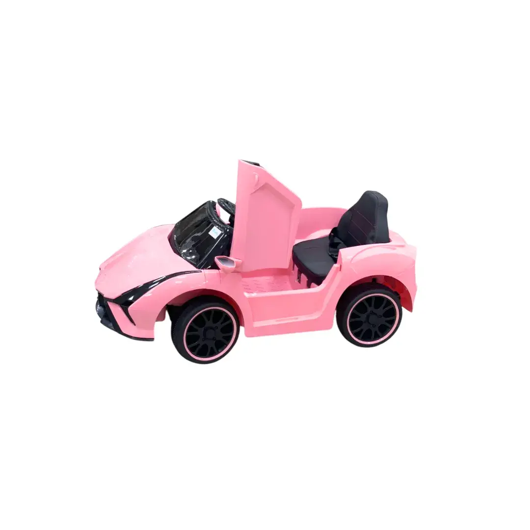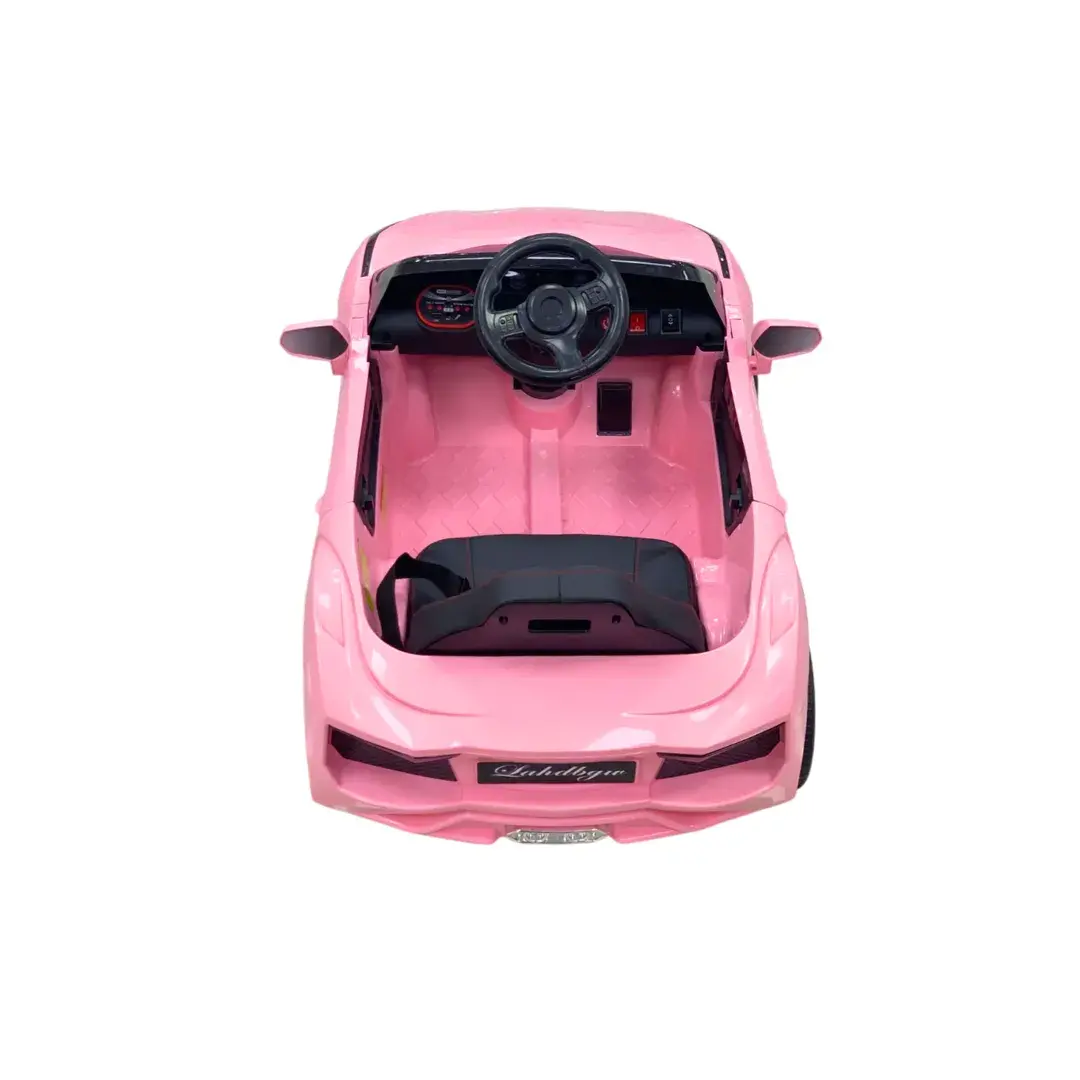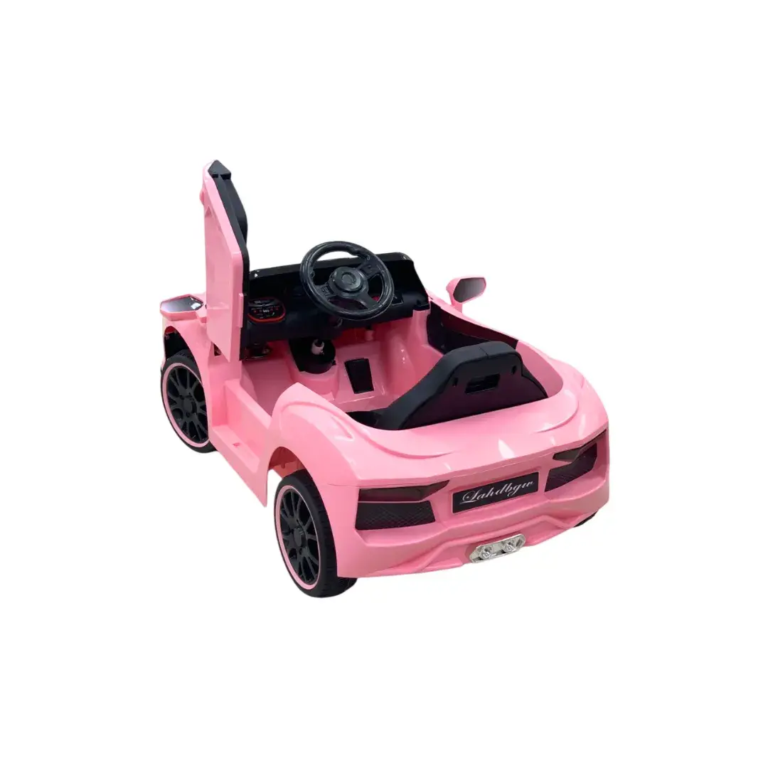 Haz que tu hijo disfrute de la experiencia de conducir con este auto eléctrico a batería color rosado.