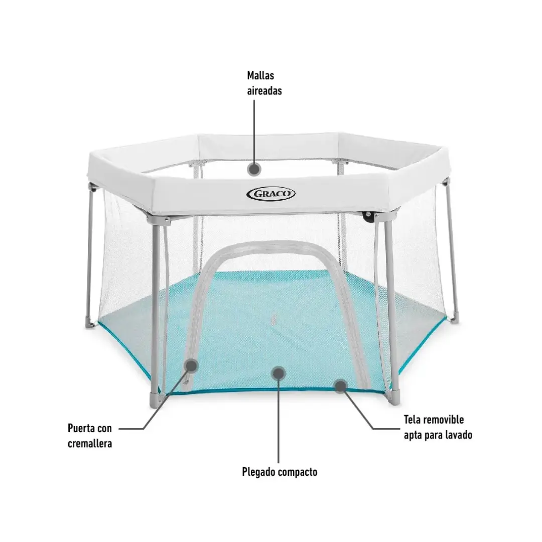 - Corralito infantil portátil para uso en interiores y exteriores.