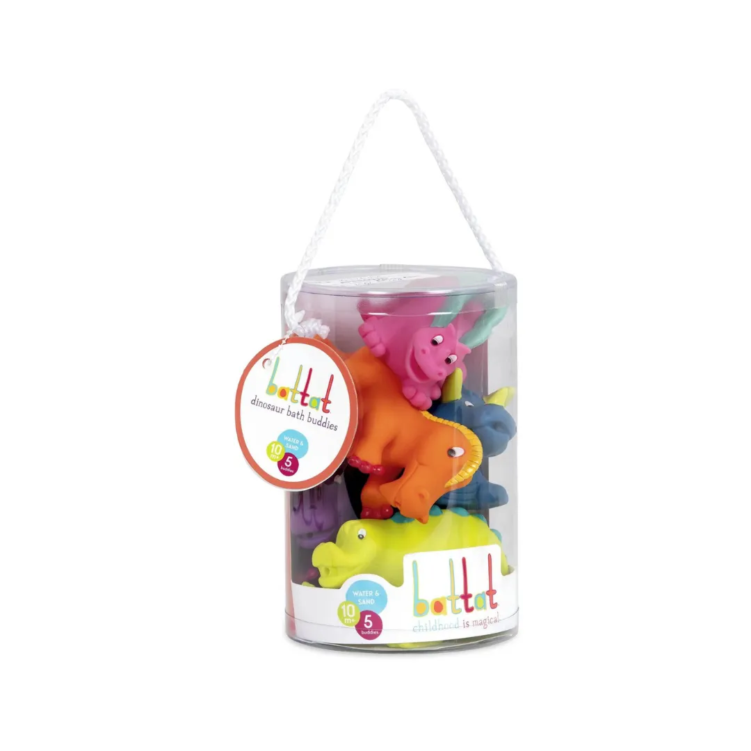 ¡Lleva la diversión jurásica a la hora del baño con los juguetes de baño Dinosaurios de Battat! Este set incluye 5 adorables dinosaurios de colores brillantes, perfectos para los pequeños exploradores. Cada figura está diseñada para ser fácil de agarrar y apretar, lo que las convierte en el complemento ideal para un baño lleno de aventuras.