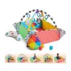 Los lados se pliegan para crear una piscina de bolas o se colocan planos para un tapete de tamaño gigante