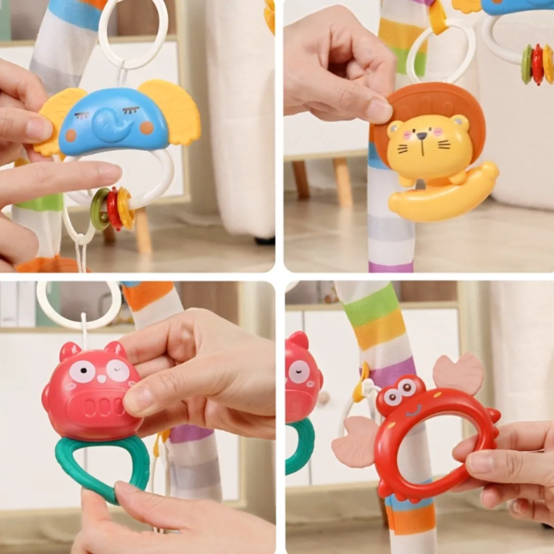 Colgantes de diferentes formas y colores: Fomentan la motricidad fina y la curiosidad.
