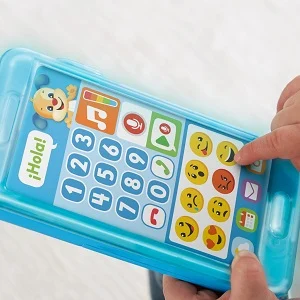 Con cuatro «aplicaciones» interactivas, ocho emoticonos diferentes, luces de colores y sonidos realistas de teléfono, ¡los pequeños aficionados a la tecnología estarán encantados con el Teléfono aprende con Perrito de Ríe y Aprende, que se parece mucho a los de sus padres! En este teléfono interactivo hay un montón de actividades divertidas, ¡desde hacer llamadas a Perrito y pulsar los botones, hasta bailar al ritmo de la música y grabar «mensajes de voz» para reproducirlos una y otra vez! Y mientras los niños descubren todas las divertidas luces, los sonidos y los juegos de imitación de este teléfono móvil, ¡también aprenden a contar, los días de la semana, sentimientos diferentes, saludos y a conversar!