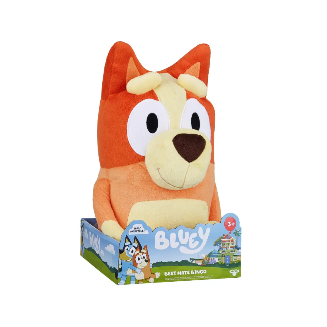 Ideal para niñas y niños desde 3 años, el peluche Bingo estimula el juego emocional y la conexión con la serie ganadora de premios. Su tamaño portátil lo hace ideal para acompañar en salidas, siestas y momentos de cariño. Ya sea como parte de una colección de Bluey o como compañero único, este peluche es un regalo tierno y significativo que encanta a fans de todas las edades.