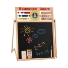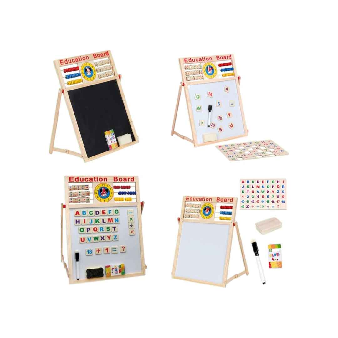 - Doble Faz: Un lado es una pizarra negra clásica para usar con tiza, y el otro lado es una pizarra blanca para usar con marcadores borrables, ofreciendo dos superficies para múltiples actividades.