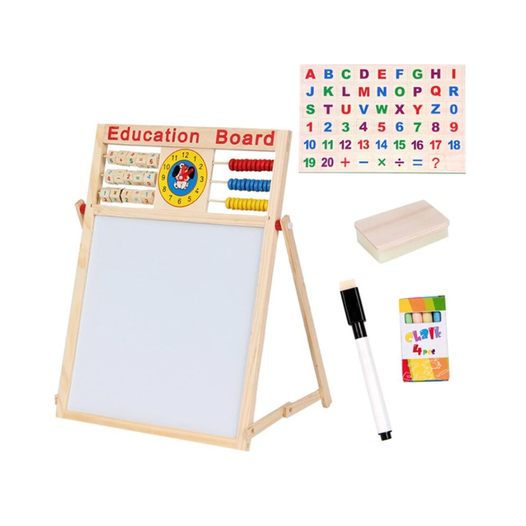 - Accesorios Incluidos: Viene con un conjunto de tizas, un borrador, un marcador borrable y letras y números magnéticos, proporcionando todo lo necesario para comenzar a aprender y jugar de inmediato.