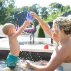- Fácil de Usar: Su tamaño ergonómico y mango cómodo hacen que sea fácil para los niños sujetarla y disfrutar del agua mientras juegan.