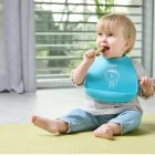 • Babero ajustable y flexible: Su diseño suave se adapta cómodamente al cuello del bebé, y su bolsillo profundo recoge cualquier resto de comida.