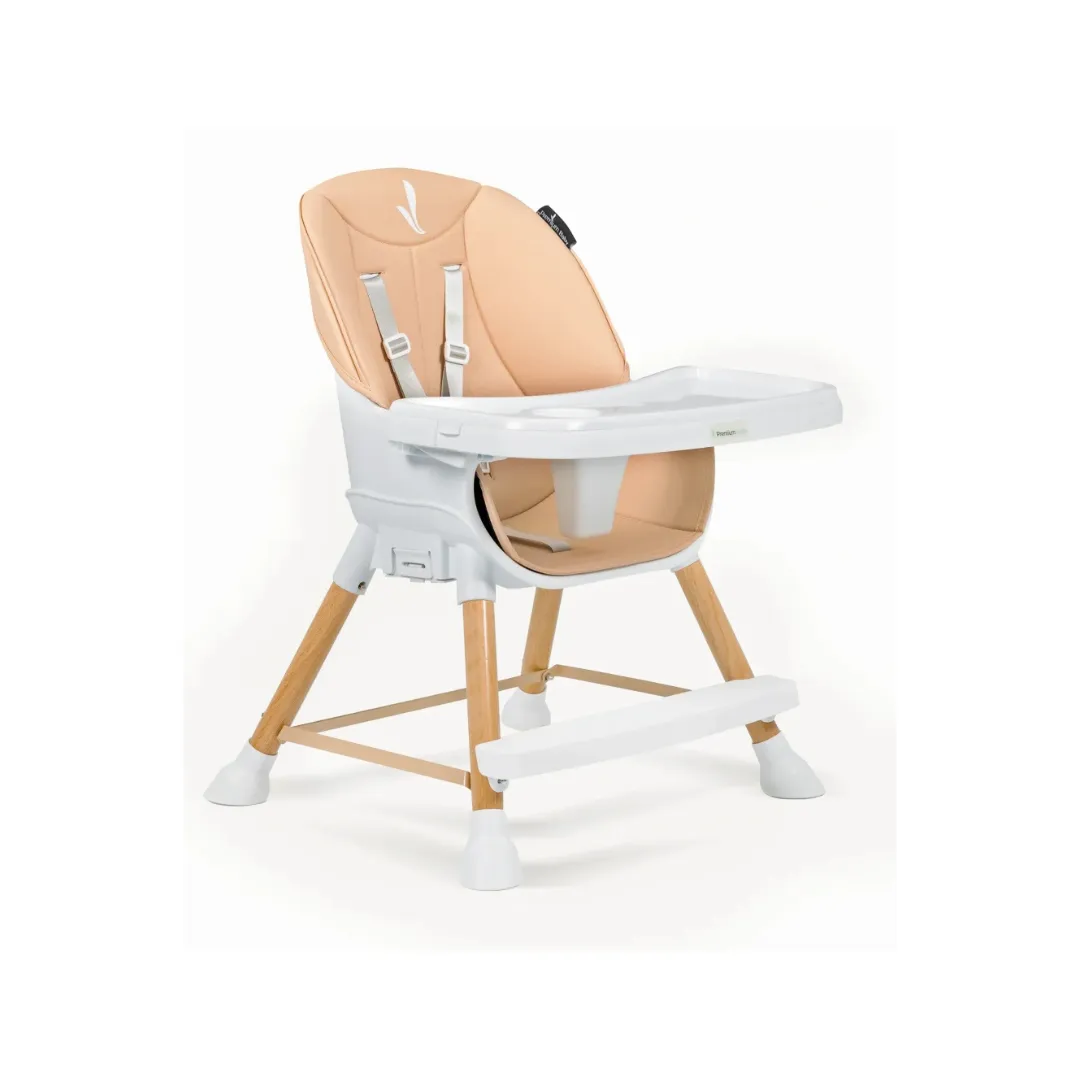 Incluye una bandeja ajustable y removible de doble capa, arnés de 5 puntos para mayor seguridad, y un reposapiés que se adapta al tamaño del niño. Además, sus patas con terminaciones antideslizantes aseguran estabilidad en todo momento. Su delicado color rosa y acabado moderno convierten esta silla en una pieza funcional y elegante que se adapta a cualquier espacio del hogar.