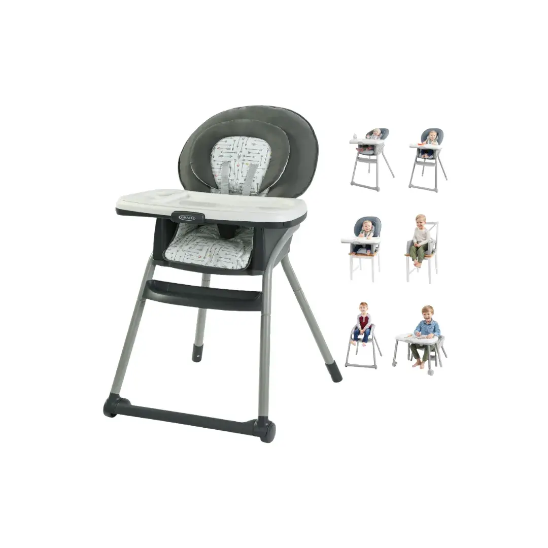 La silla para comer Graco Table2Table LX 6-in-1 ofrece 6 etapas de crecimiento desde una silla para bebés hasta una mesa para niños grandes con sillita. Cuenta con un soporte para la cabeza del bebé y 3 posiciones de reclinado para una comodidad temprana. Luego, se convierte en un booster para jóvenes para darle a su hijo mayor su propio asiento en la mesa.